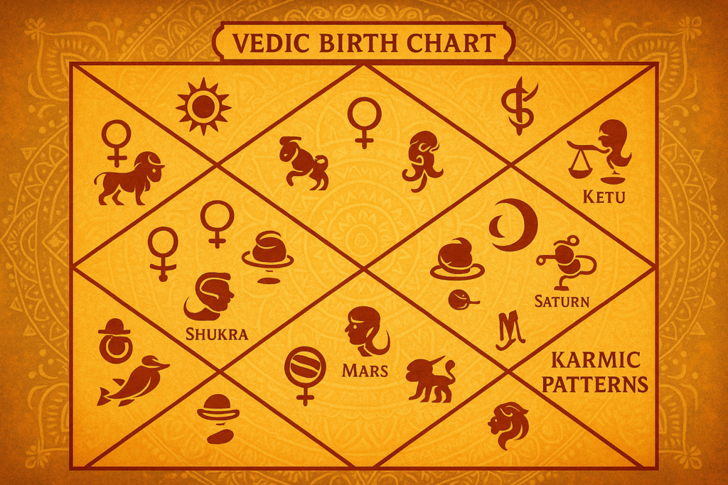 Traditional Vedic birth chart showing planetary positions and karmic influences
