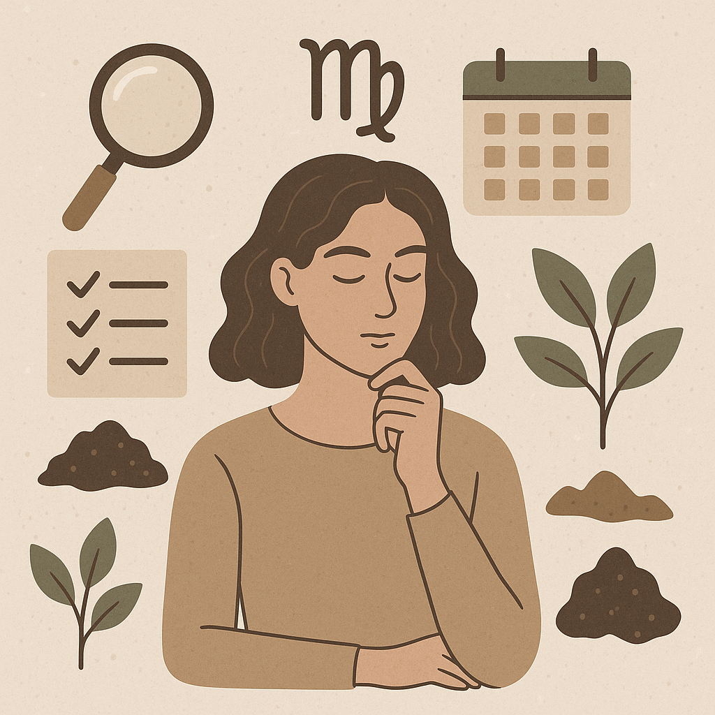 Virgo personality traits showing analytical, perfectionist and organized characteristics of earth sign